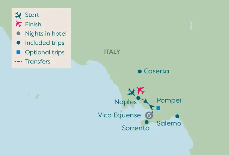 Make your own way to the airport for your flight, after which, we'll transfer you to your hotel in central Sorrento.