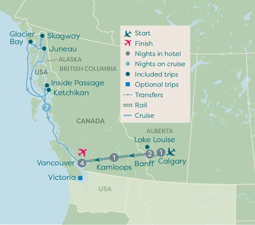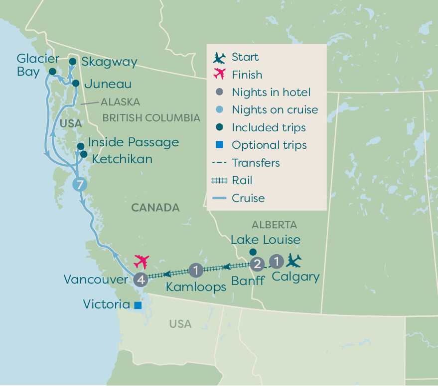 This morning we will make our way to the town of Banff. On the way, we’ll pass through the spectacular scenery of the Rocky Mountains and tour Banff National Park, where staggering views appear at every turn. Snow-capped mountains, crystal-clear lakes, sparkling streams and swathes of forest are just some of the attractions in this stunning destination. The wildlife is equally as impressive, so look out for black and grizzly bears, wolves, elk and deer on land, then keep your eyes peeled for eagles, hawks and ospreys in the sky.